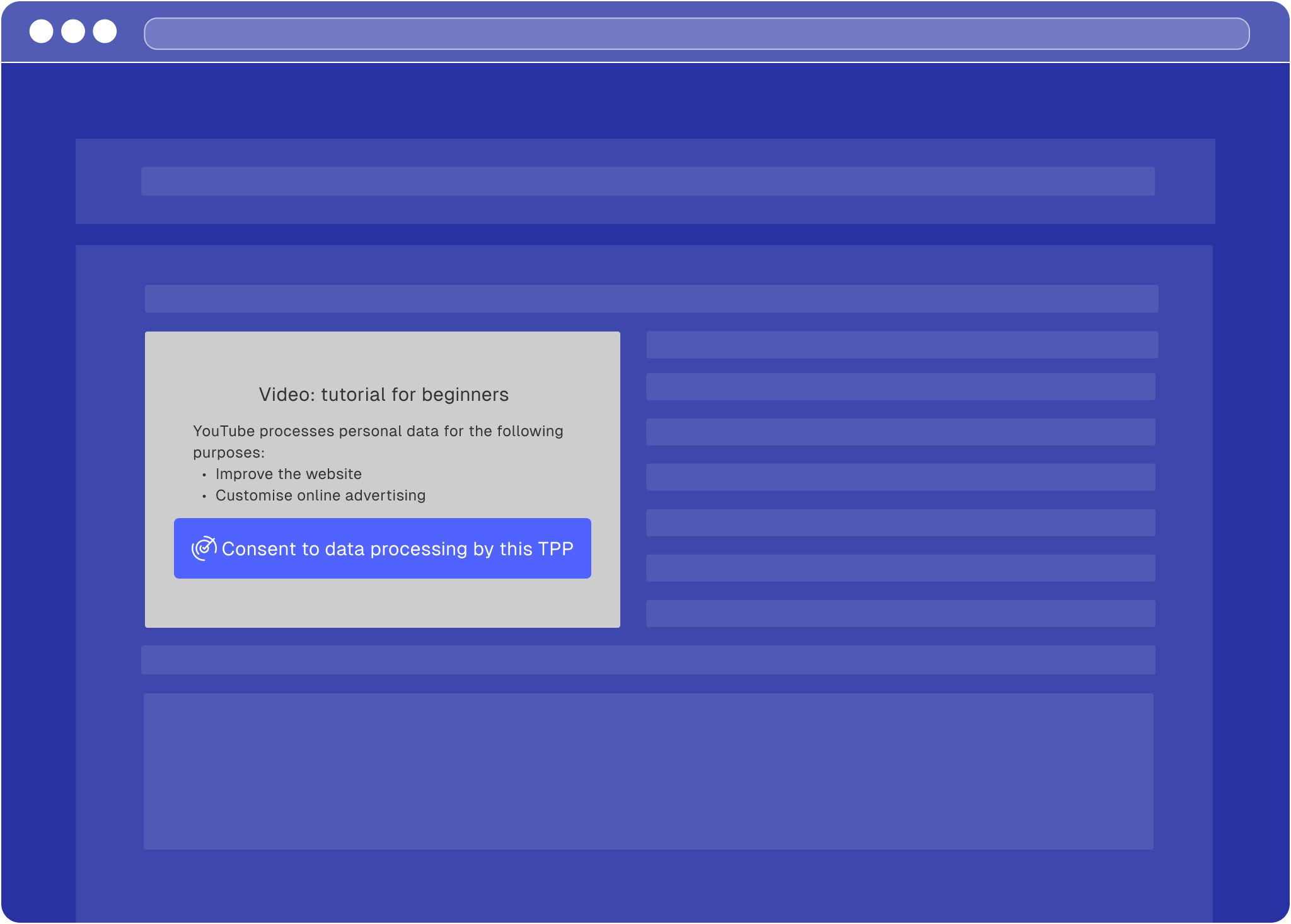 Some third-party integrations process personal data solely to provide their service, while others also use data for their own additional purposes (e.g. advertising). This means you’ll need to collect different consents depending on the specific third-party provider you want to embed on your website.